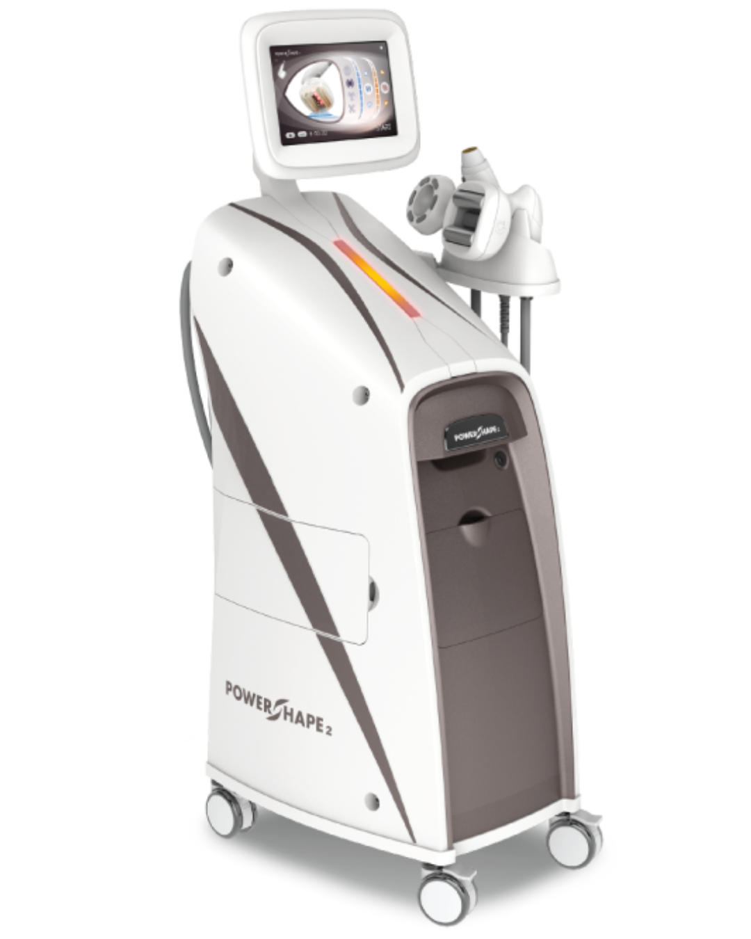 PowerShape2 is a non-invasive body contouring system that uses a combination of Radio Frequency (RF), vacuum suction, mechanical rollers, LED, and low-level laser to target cellulite, release fascia, stimulate collagen, and improve lymphatic drainage.